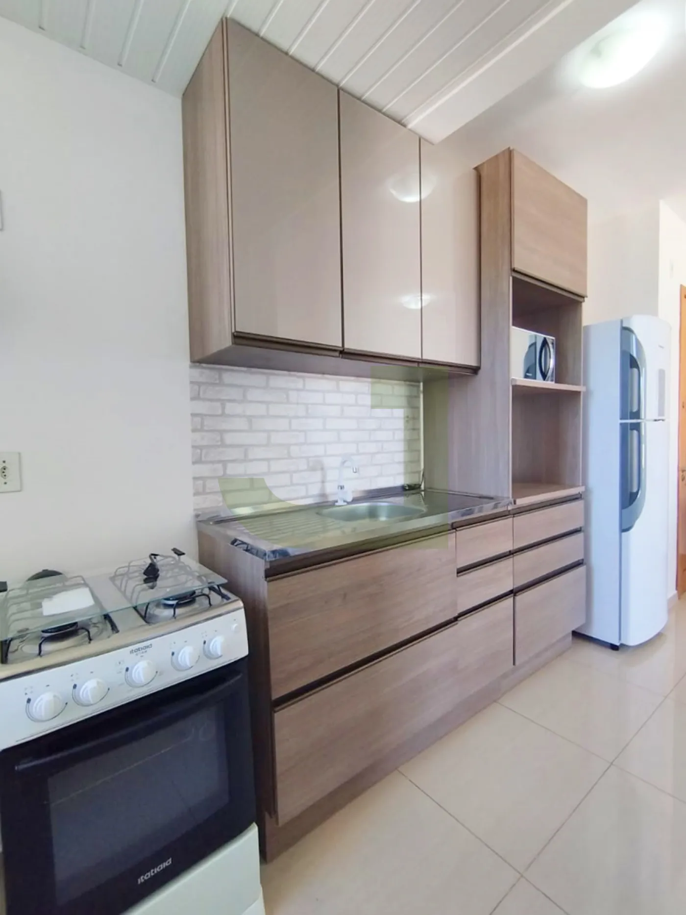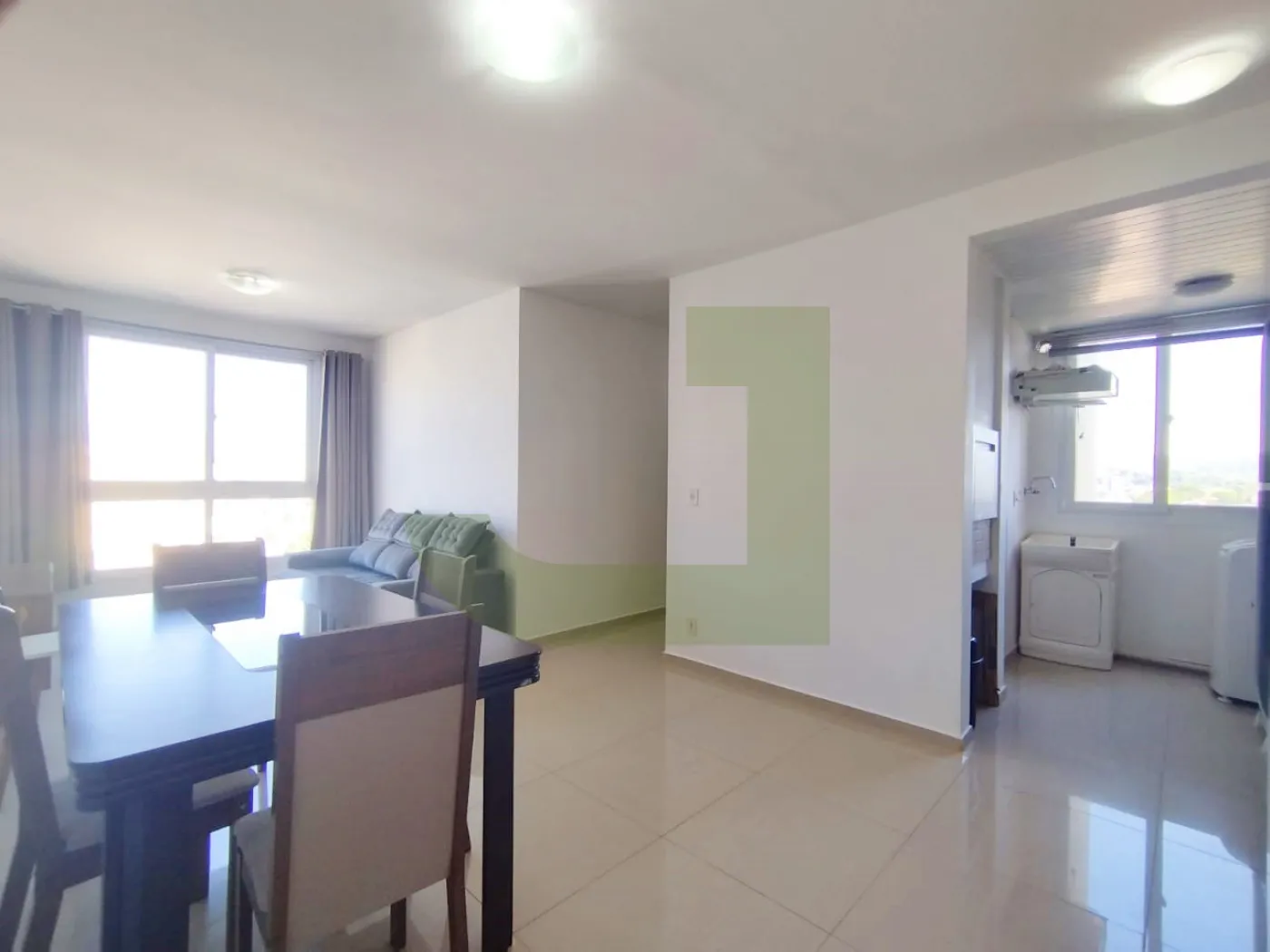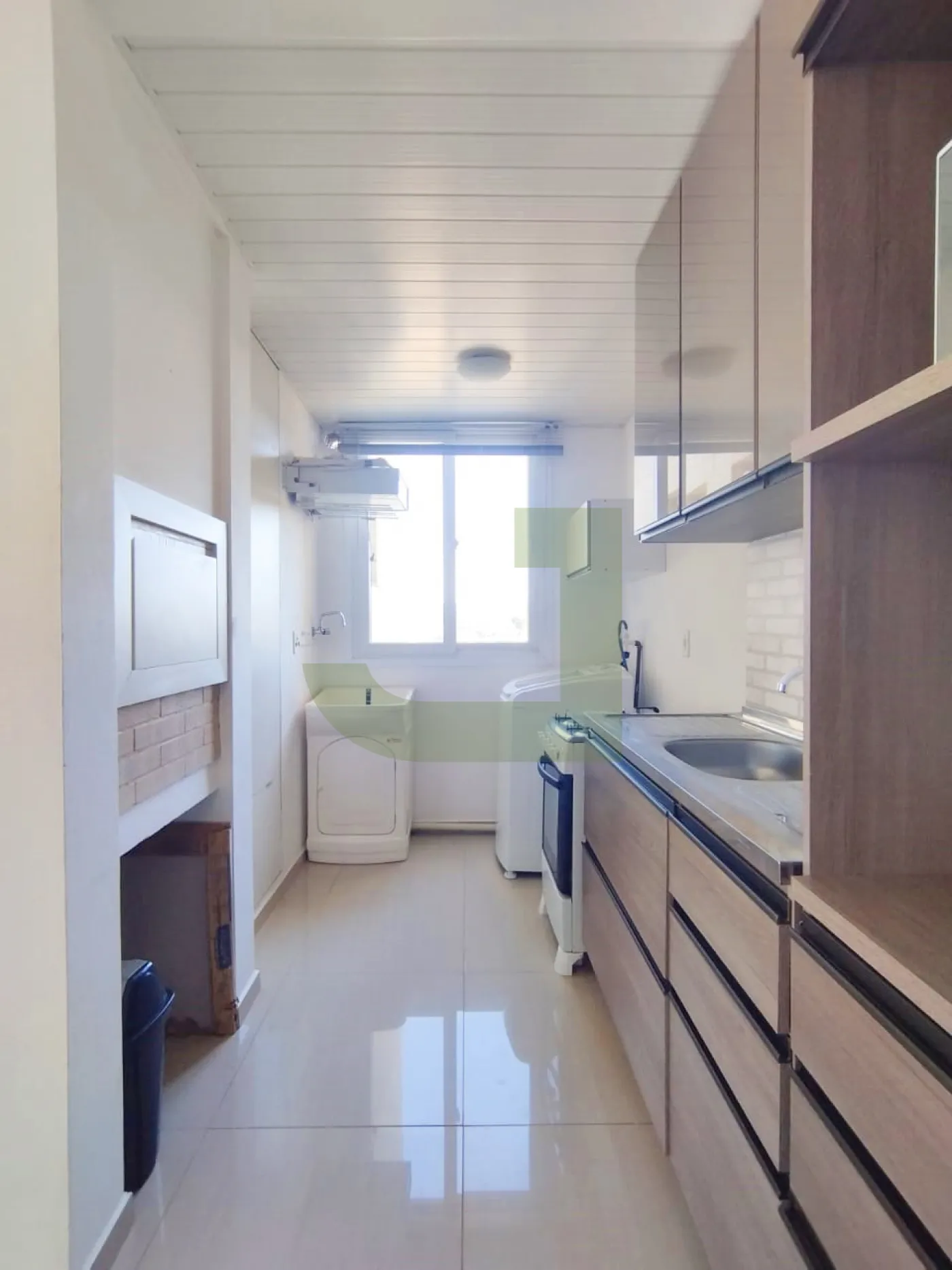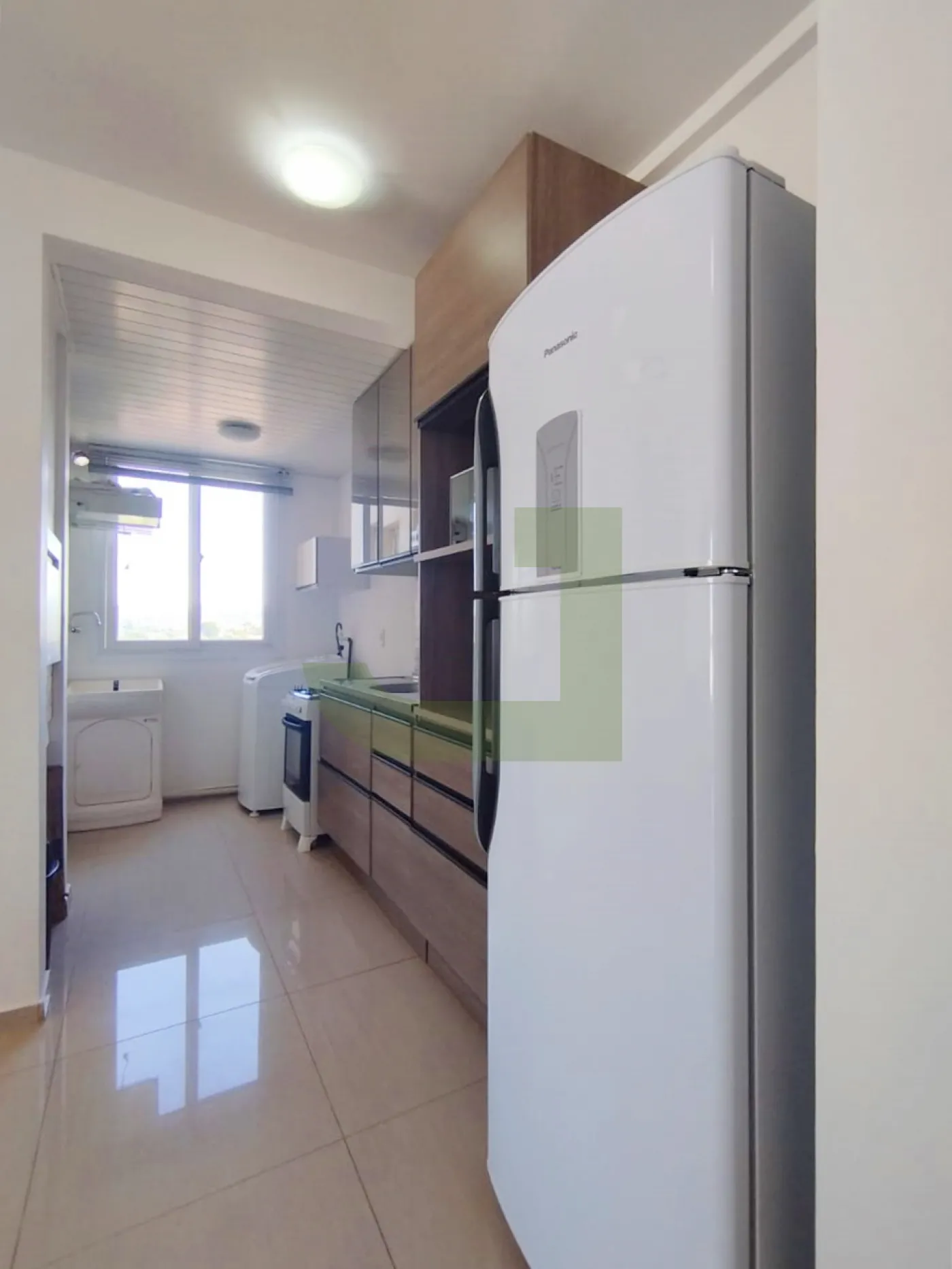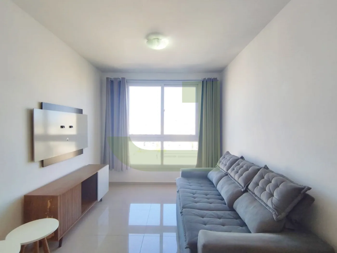 A cozinha conta com móveis sob medida, fogão e geladeira, enquanto a área de serviço está integrada, proporcionando funcionalidade ao dia a dia. O apartamento se destaca pela excelente iluminação natural, tornando os ambientes ainda mais agradáveis.