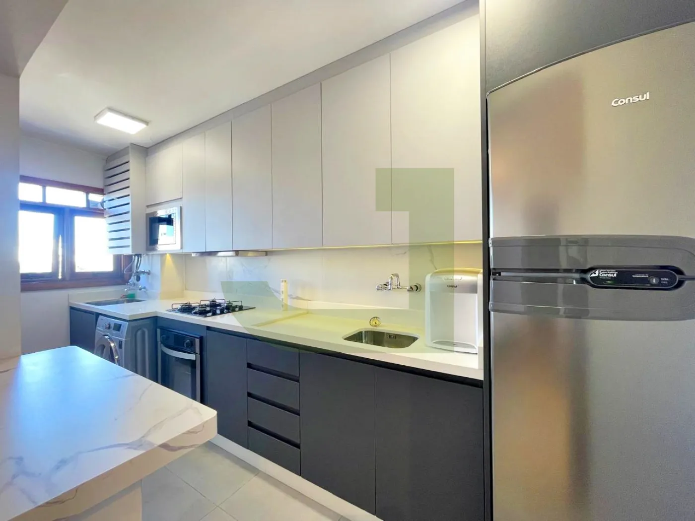 Apartamento para locação com dois dormitórios, ele parece realmente encantador! Combina conforto e praticidade, ideal para quem busca um espaço bem distribuído. A integração da sala de estar e jantar é ótima para receber amigos e familiares, especialmente com essa sacada fechada que inclui uma churrasqueira. A cozinha sob medida com geladeira e fogão facilita o dia a dia, e a área de serviço com máquina de lavar é um grande benefício.