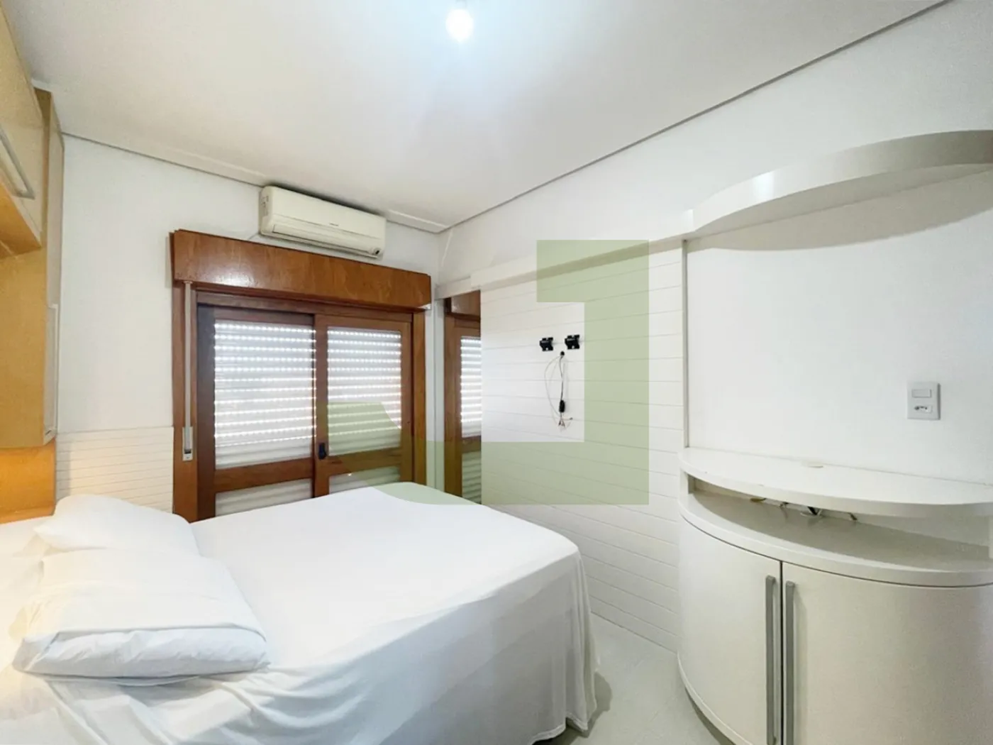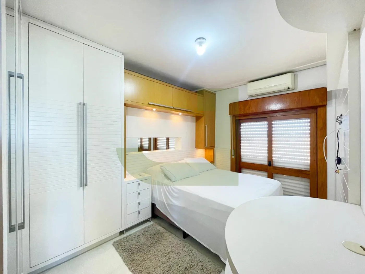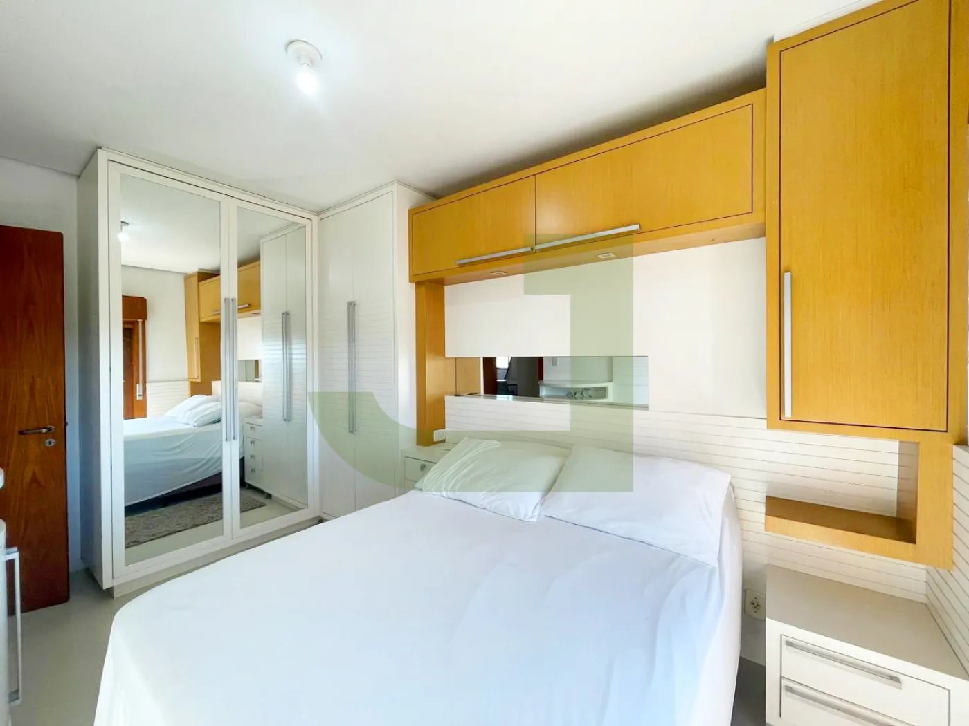 Os dormitórios sendo arejados e um deles já equipado com cama e armários sob medida oferecem praticidade imediata. E claro, uma vaga de garagem coberta é sempre um ponto positivo. Além disso, o condomínio parece ser bastante seguro, com portão eletrônico para os carros, portaria remota para maior conveniência e um salão de festas para momentos de lazer.