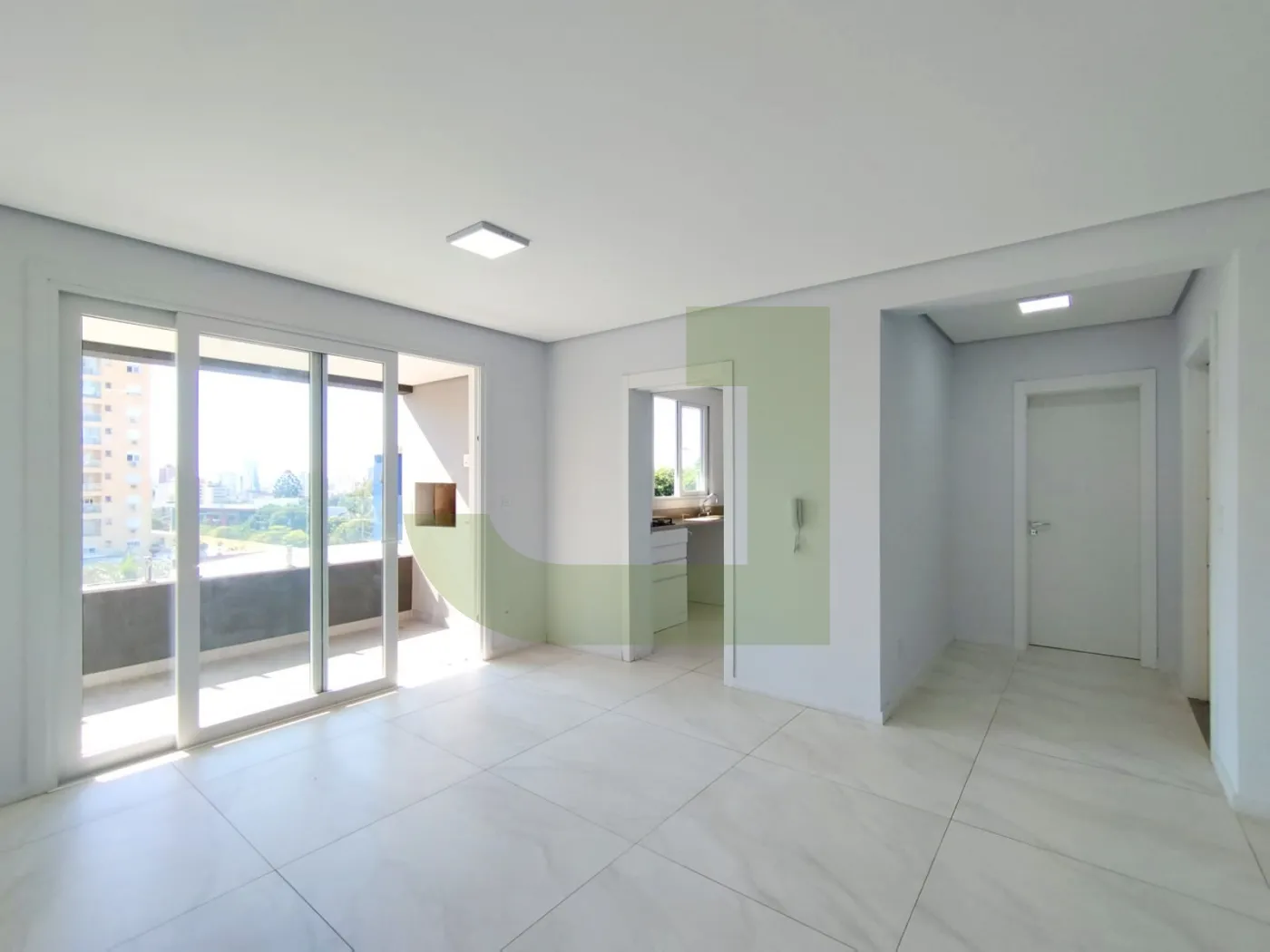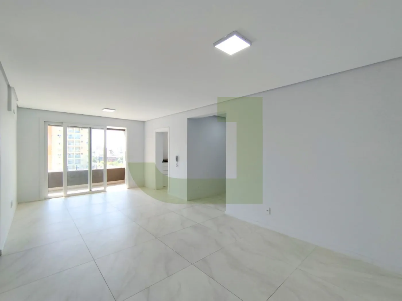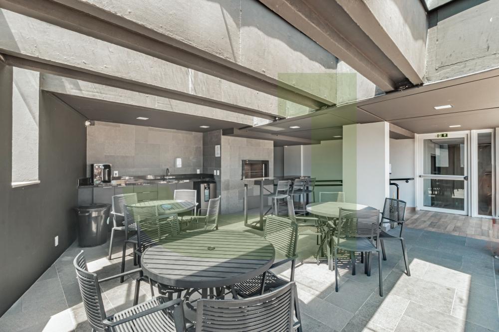 A sala é ampla, proporcionando espaço para diferentes ambientes, e conecta-se a uma sacada espaçosa com churrasqueira, ideal para momentos de lazer e socialização com amigos e família.