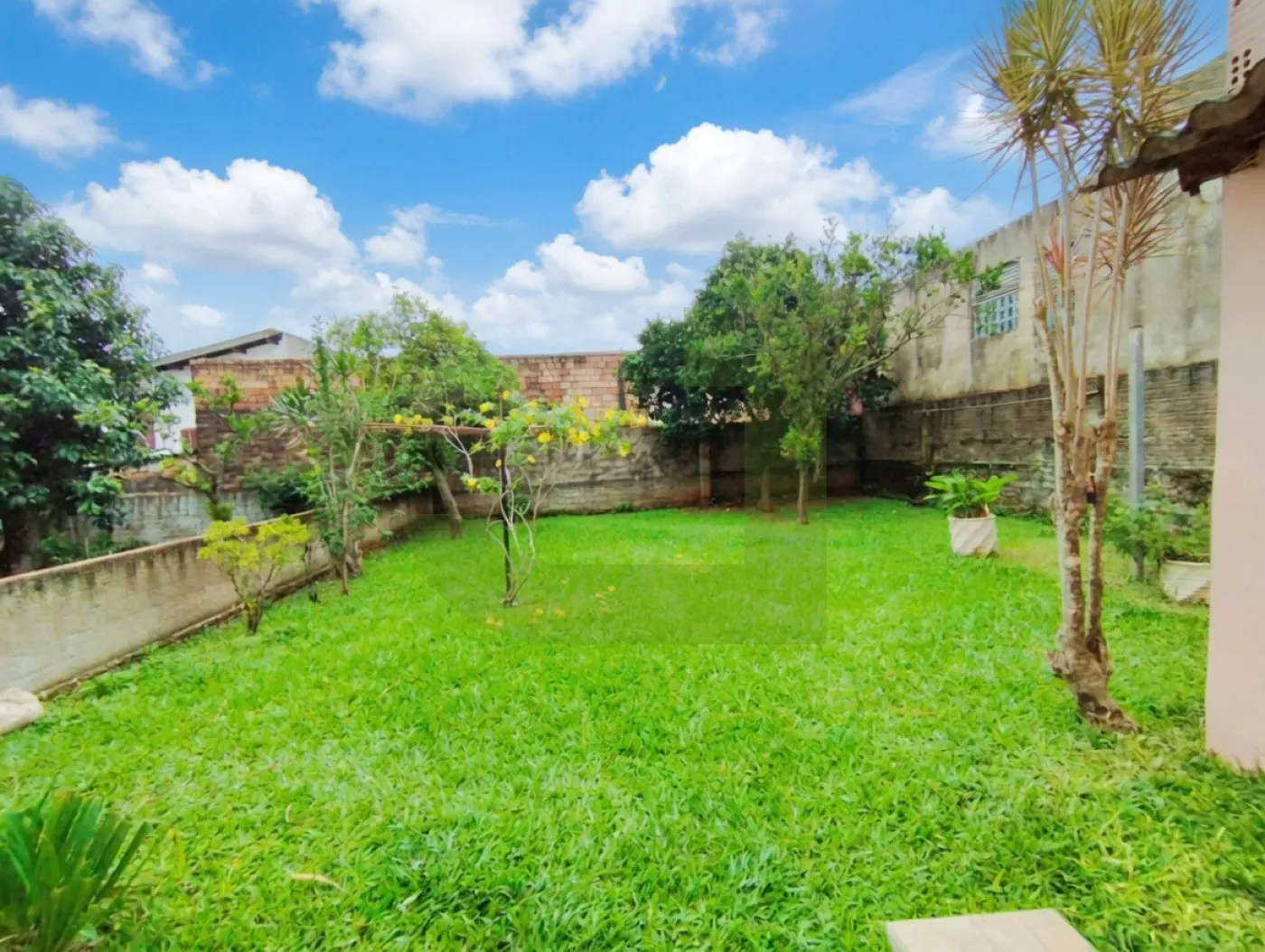 Nos fundos, a casa oferece um belo pátio gramado, perfeito para aproveitar momentos ao ar livre, relaxar ou até mesmo proporcionar mais espaço e liberdade para o seu pet.
