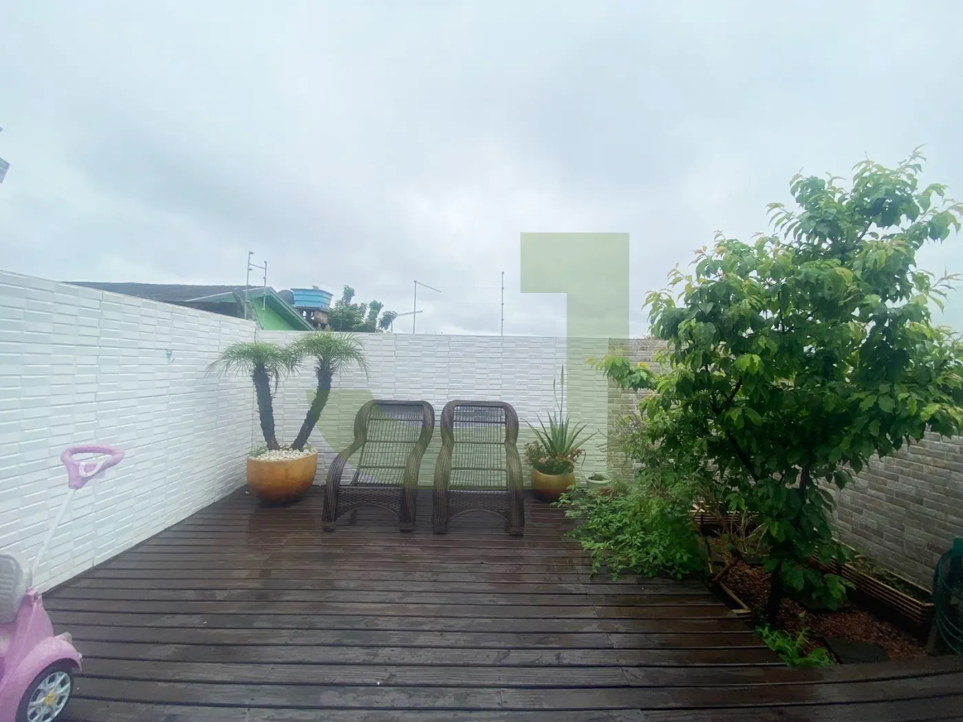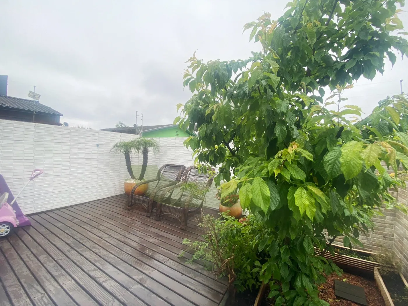 O pátio nos fundos é um refúgio ao ar livre, ideal para relaxar, brincar ou até mesmo criar um jardim.