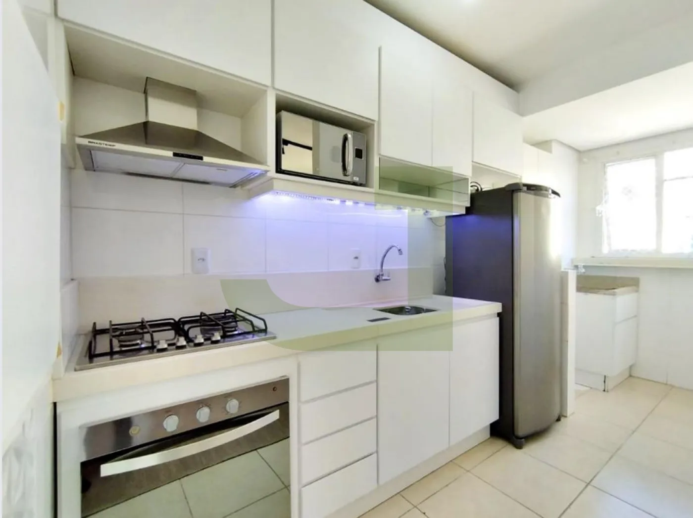 A cozinha é linda, com armários planejados e uma bela churrasqueira que é o diferencial. Ainda conta com 1 área de serviço bem arejada.
