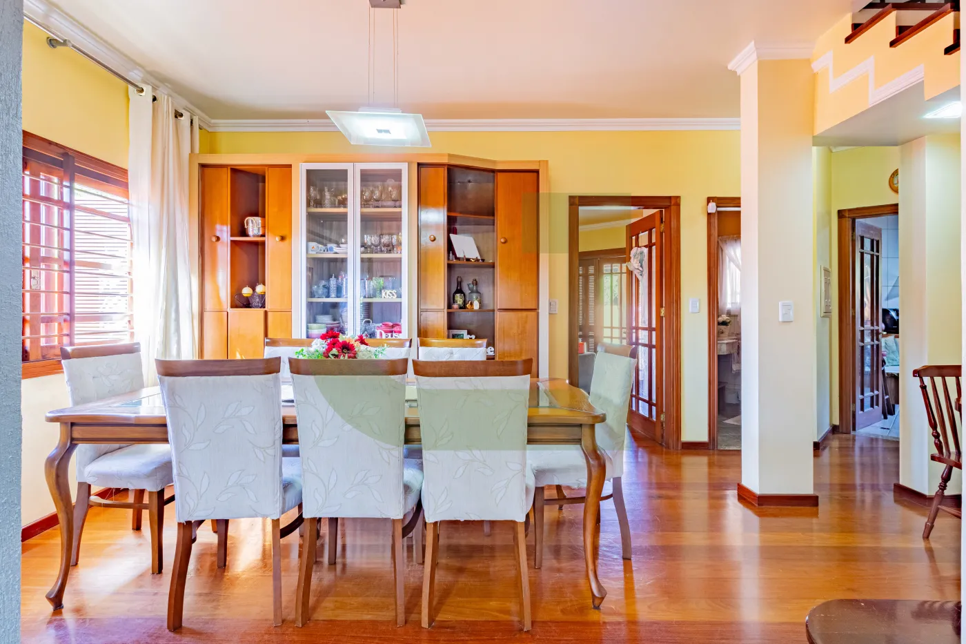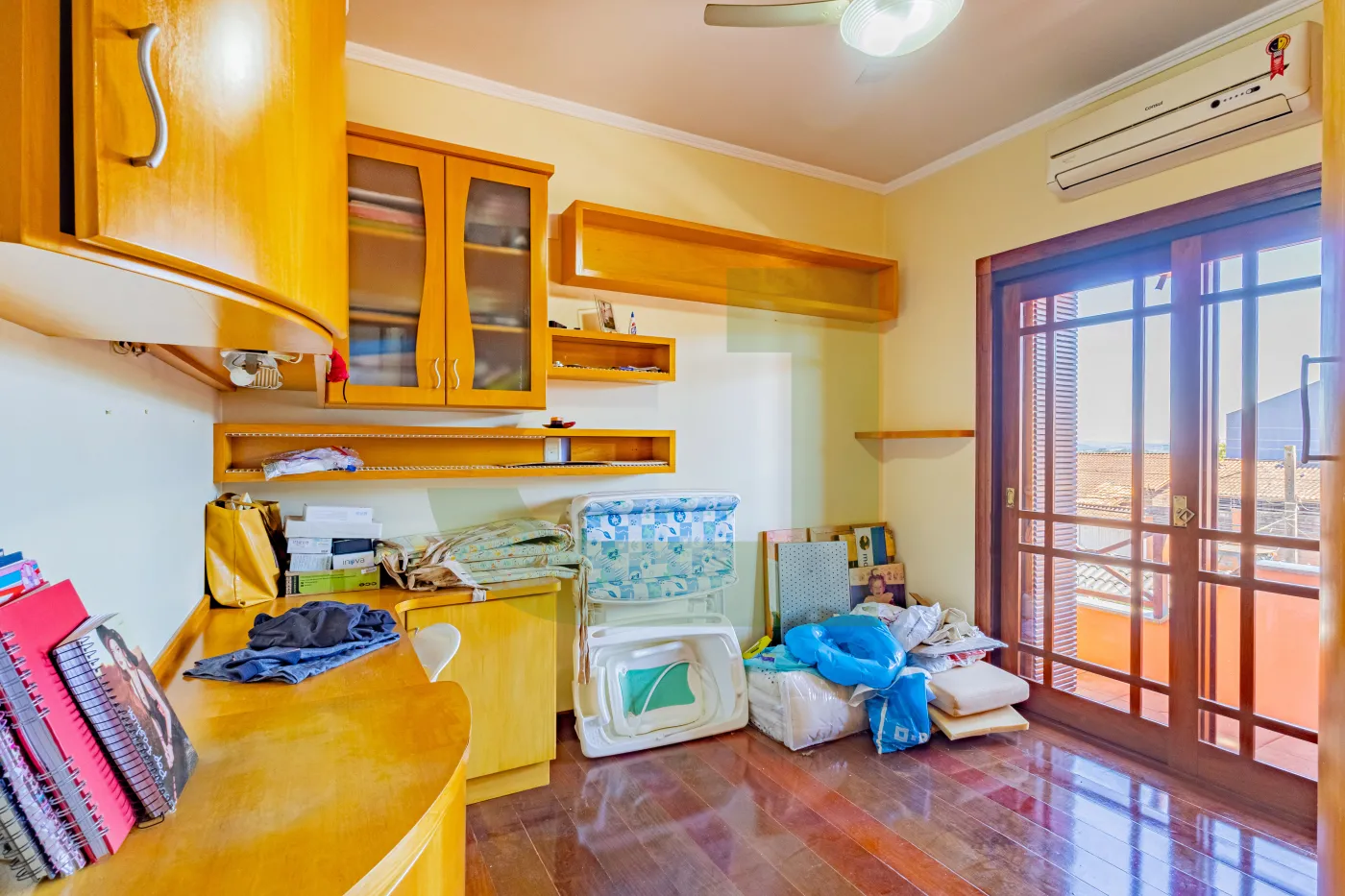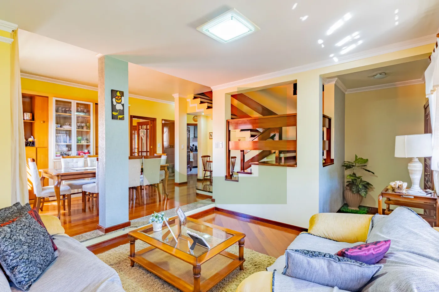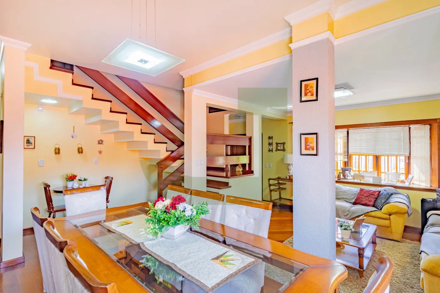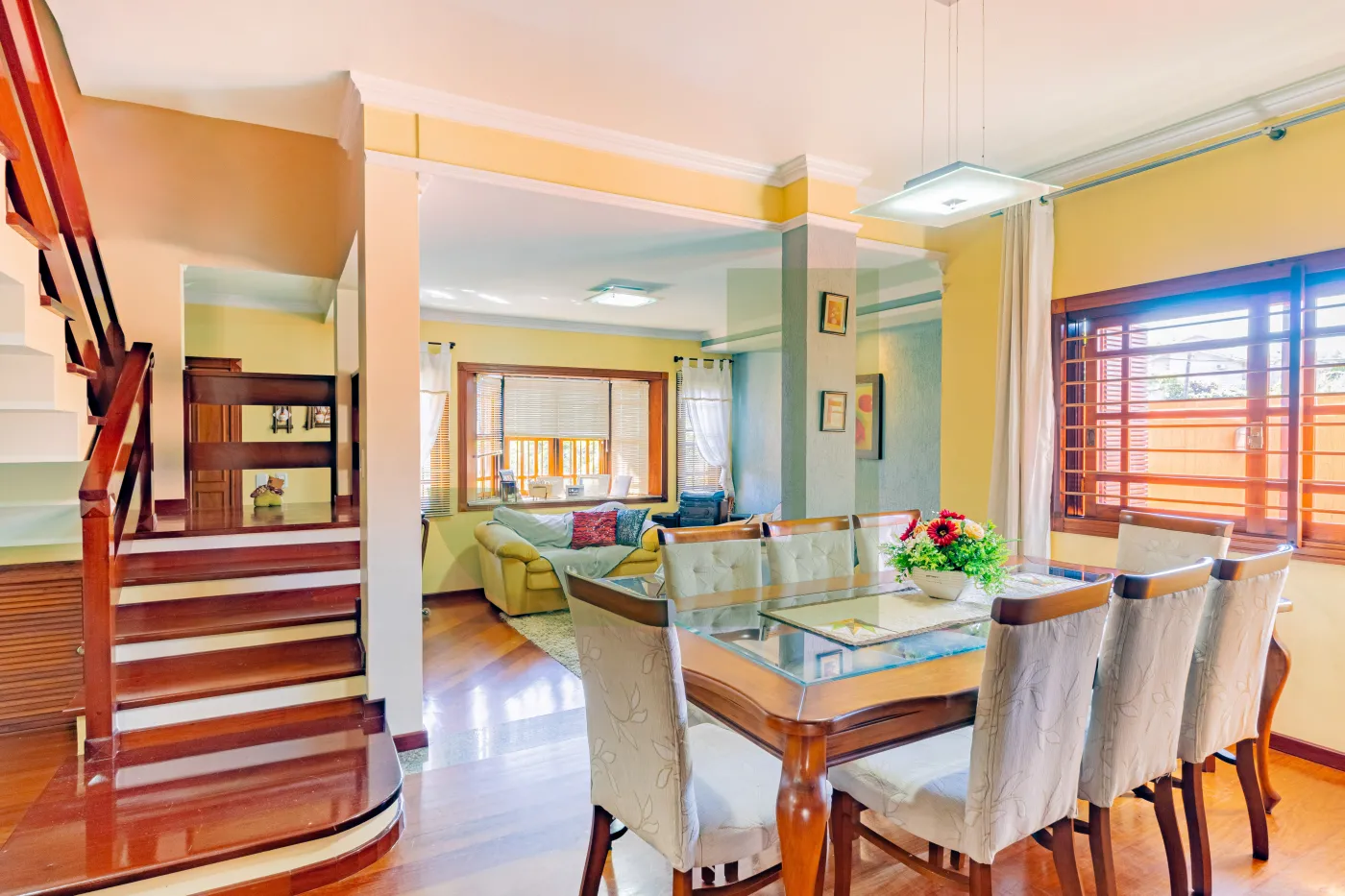 Conta com 4 dormitórios, sendo 1 suíte com closet, além de 3 sacadas e banheiro social que atende os três quartos da parte superior, garantindo praticidade e conforto para toda a família.