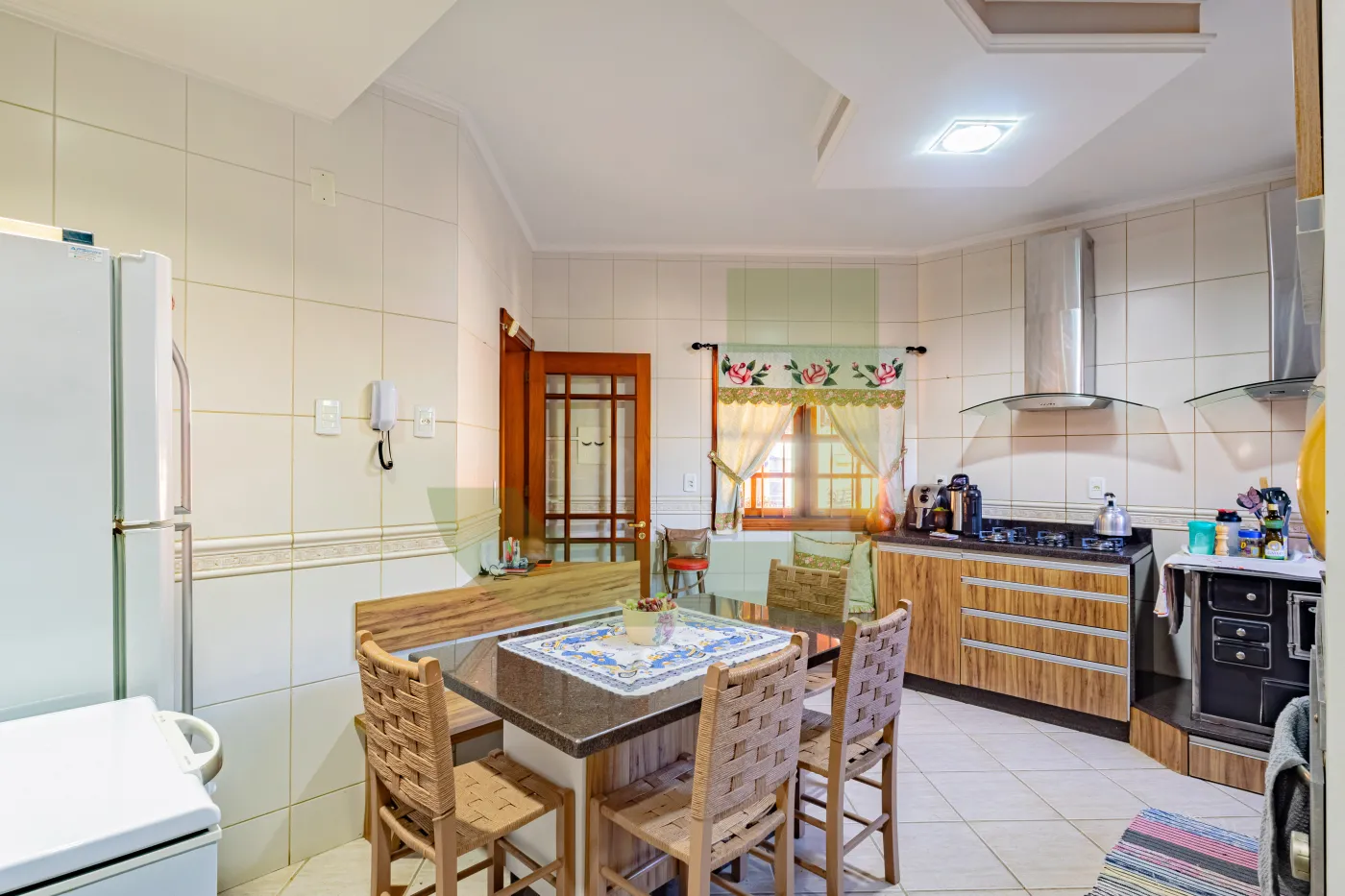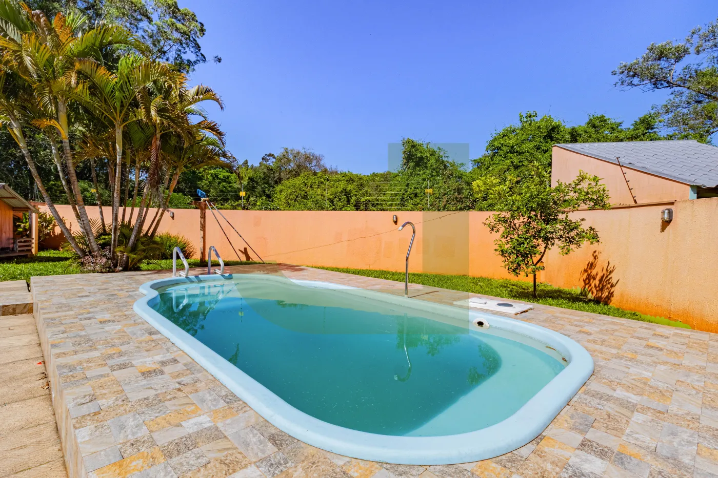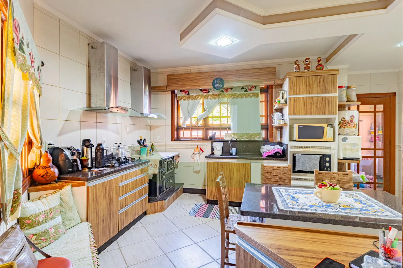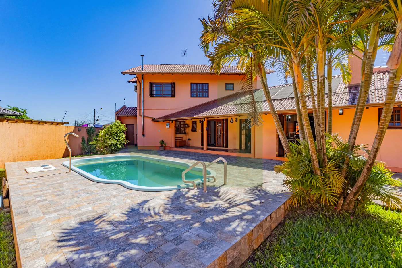 Nos fundos, um charmoso espaço gourmet com banheiro de apoio à churrasqueira, ateliê e pátio com piscina, perfeitos para momentos de lazer e convivência em família.