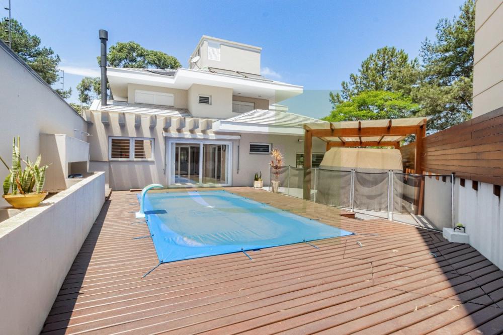 Semi mobiliada, com três dormitórios sendo um suíte, sala de estar com lareira, sala de jantar, piscina aquecida, quiosque com espaço gourmet, garagem para quatro carros cobertos, sistema de alarme e câmeras.