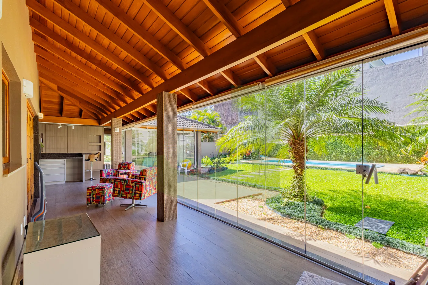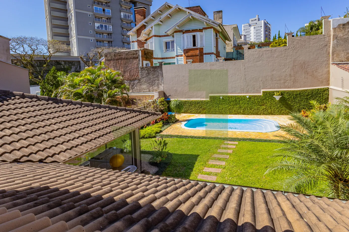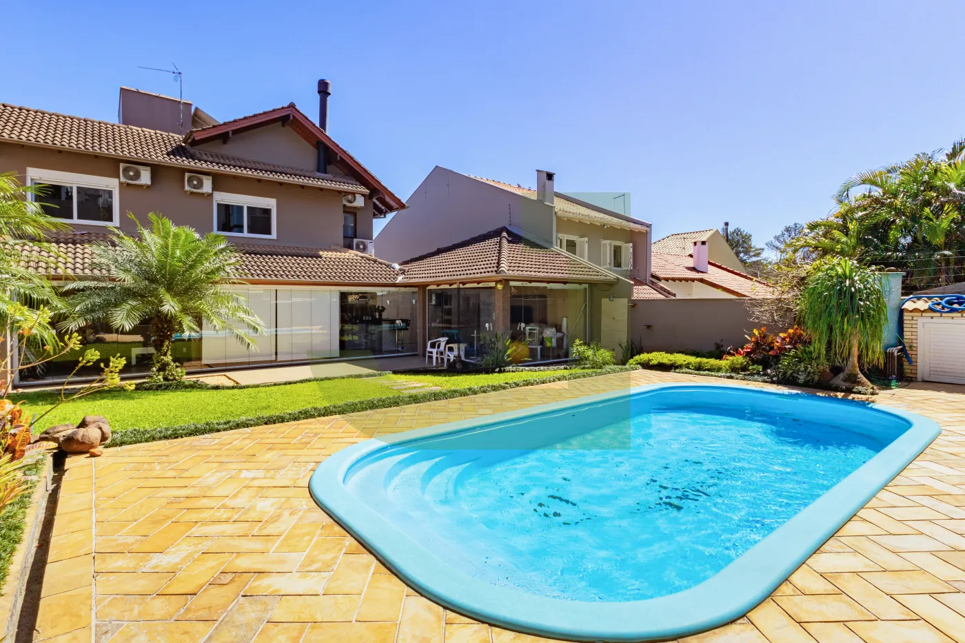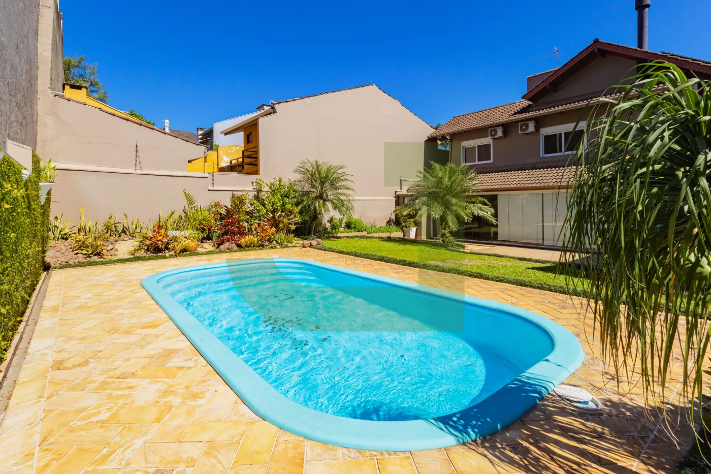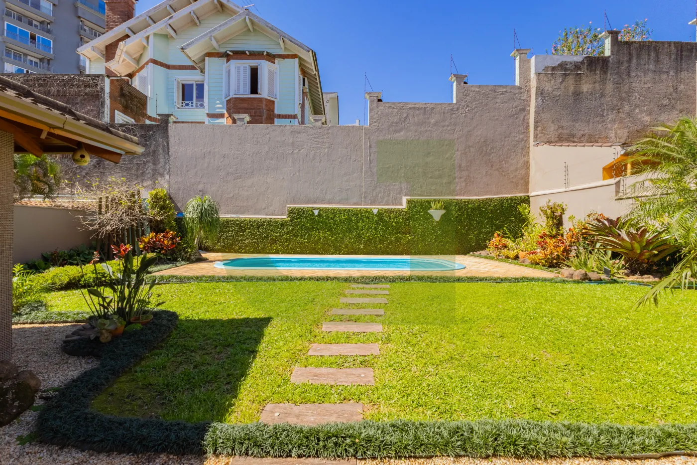 Meu jardim com paisagismo e piscina são um convite pra relaxar, tomar um sol ou curtir com as crianças.