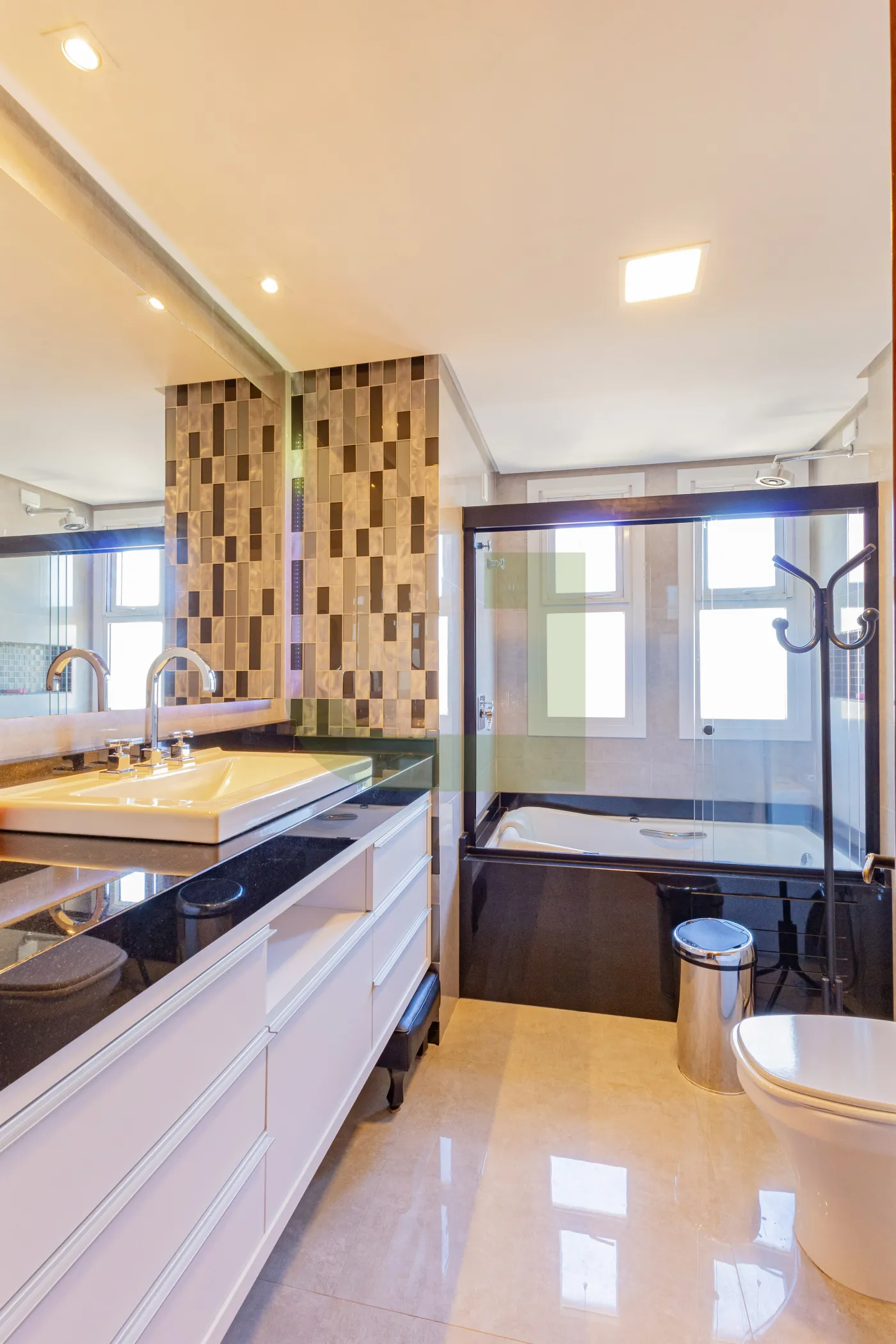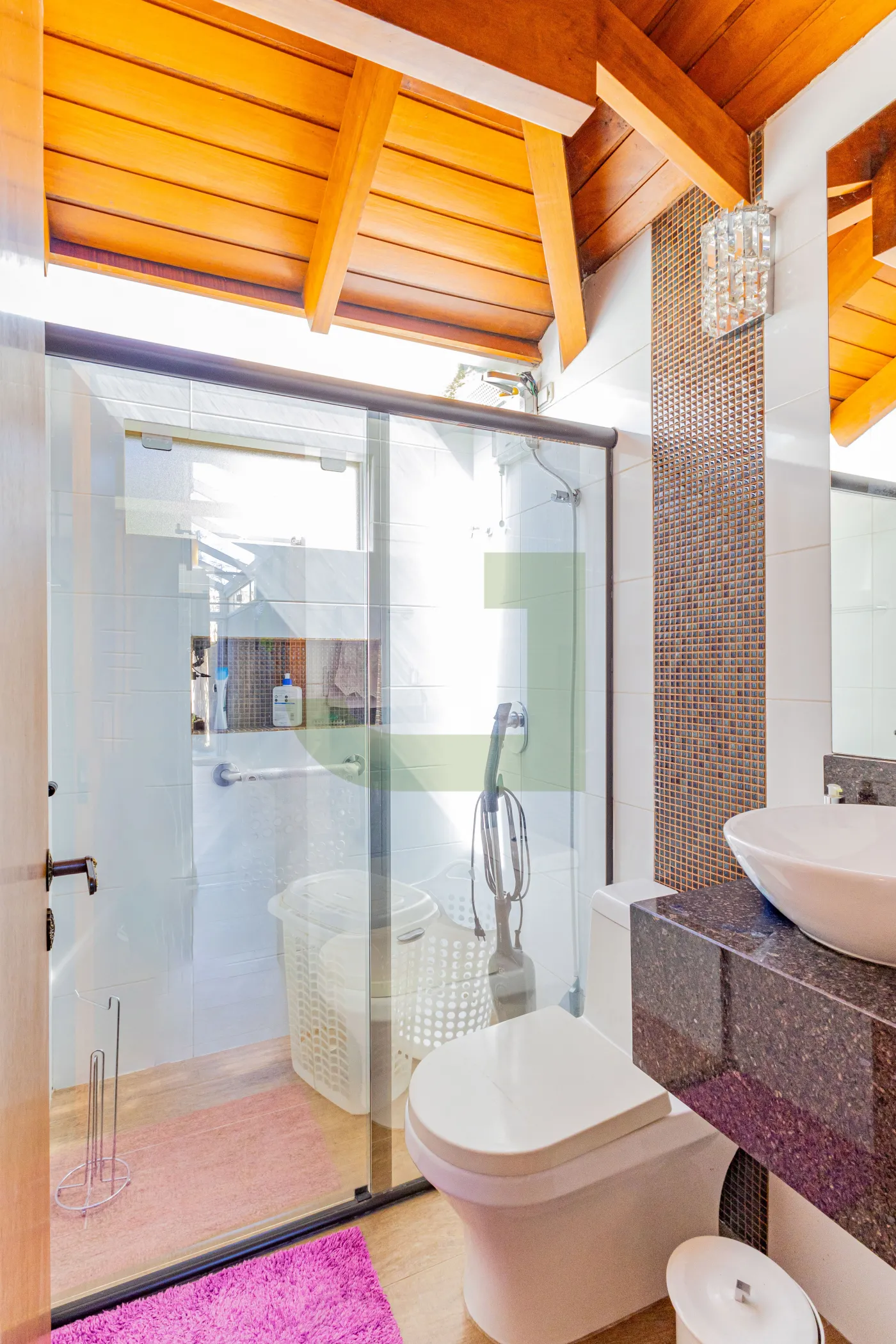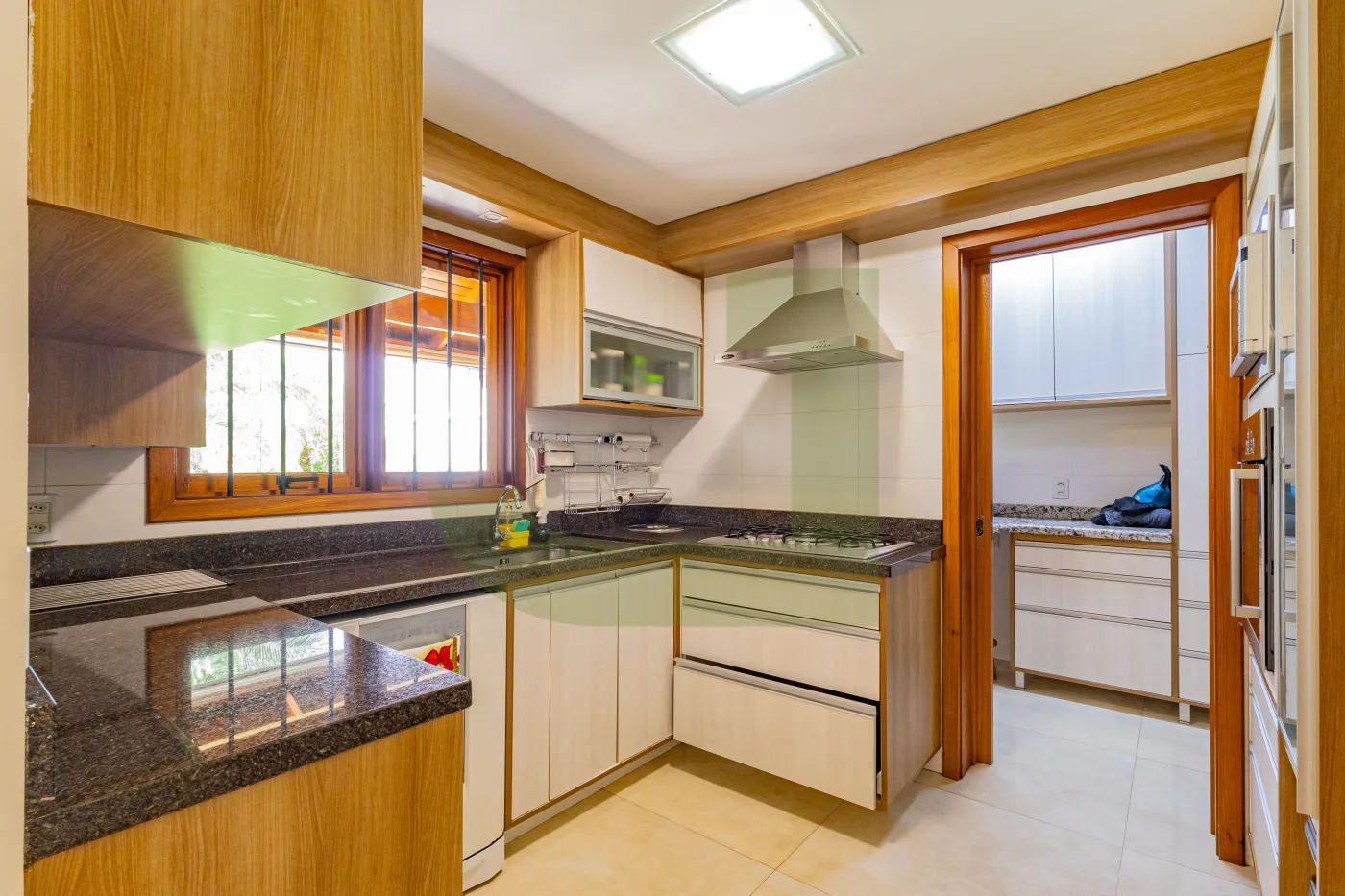 Tenho 4 dormitórios, sendo 1 suíte com closet e banheira de hidromassagem, sala ampla em 2 ambientes, cozinha americana, no total são 3 banheiros + lavabo ( 1 banheiro + lavabo na parte de baixo e 1 banheiro para atender os dormitórios de cima + 1 na suíte ) , lavanderia, e 2 vagas cobertas.