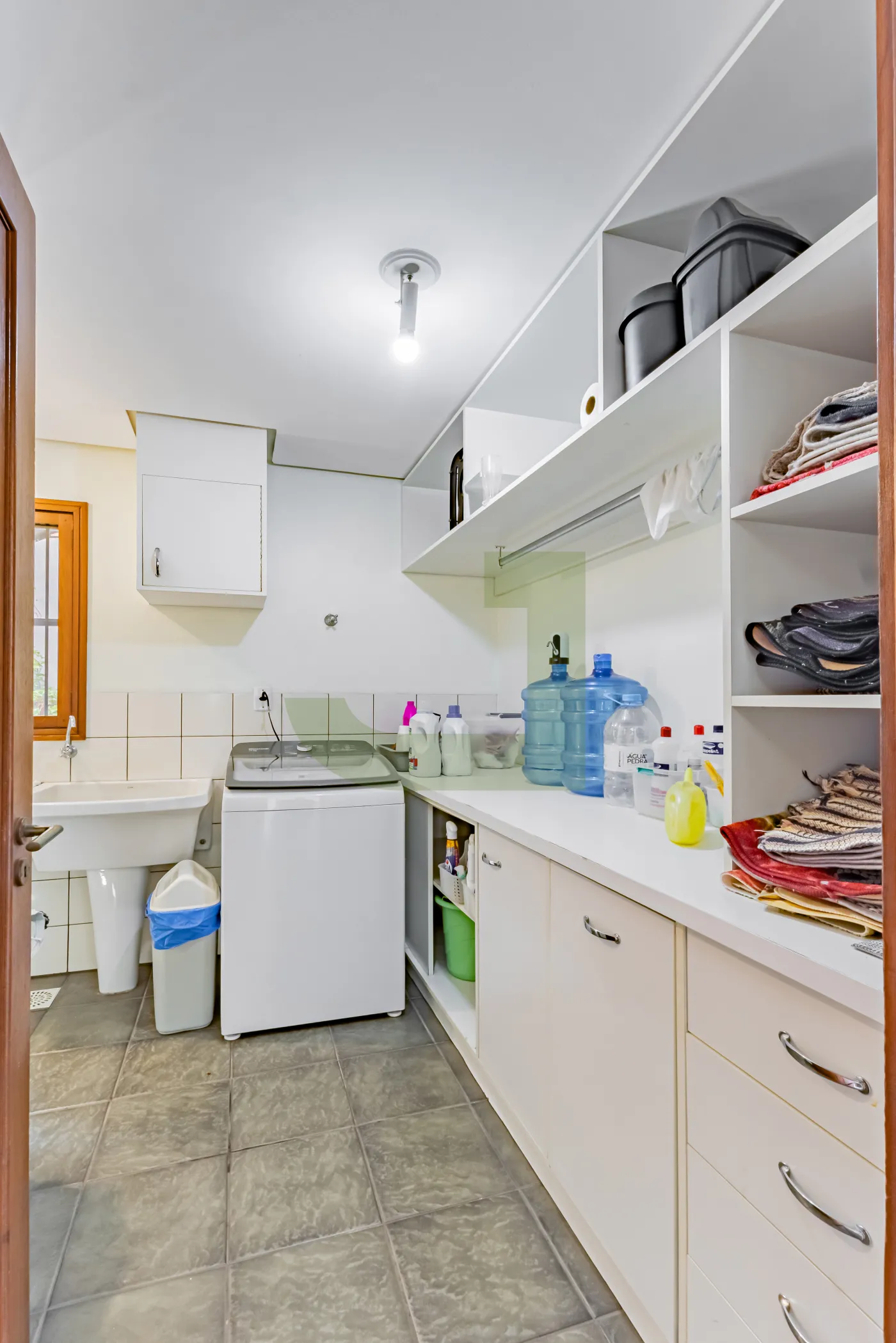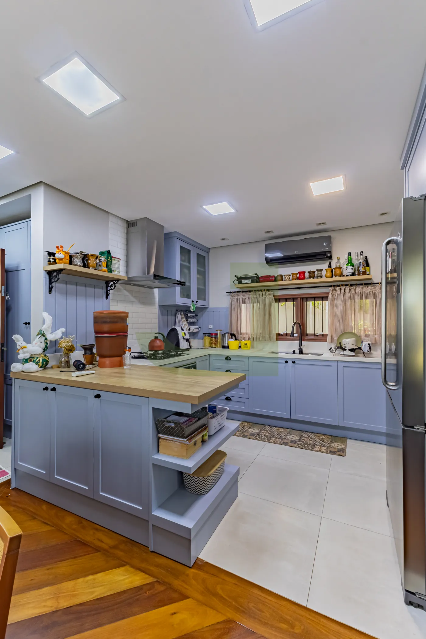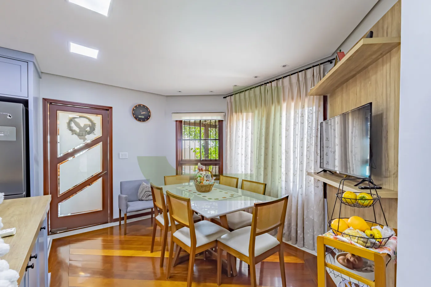 No primeiro pavimento, a casa dispõe de sala de estar, sala de jantar, cozinha separada com split, despensa e lavanderia. A ampla garagem com churrasqueira é ideal para receber amigos e familiares, com espaço para 2 carros cobertos e mais 2 vagas descobertas.
