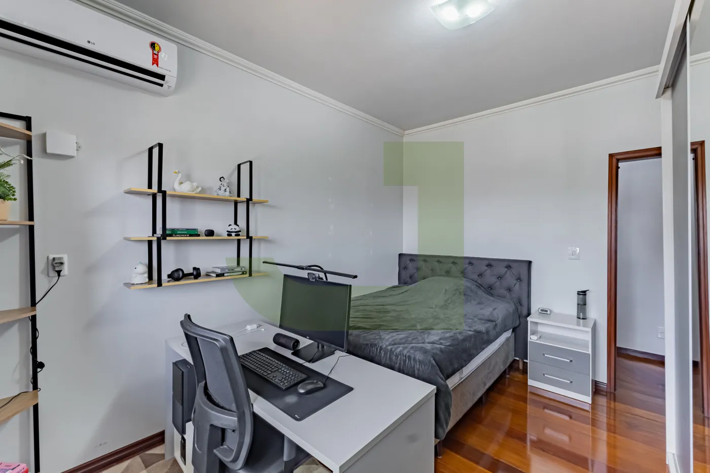 No segundo pavimento, todos os ambientes são climatizados, oferecendo máximo conforto. São 3 dormitórios, incluindo uma suíte master com closet, banheira de hidromassagem e sacada privativa. O andar ainda conta com um amplo escritório e uma aconchegante sala de estar com lareira, perfeita para momentos em família.