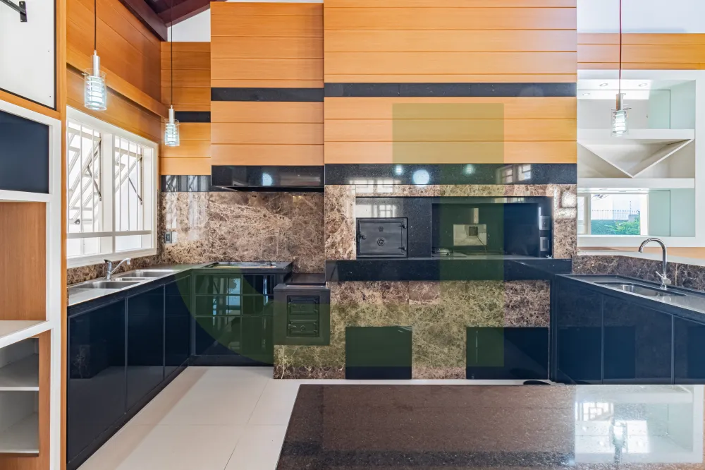Casa com 729,02m² de construção, conta com ampla sala de estar e jantar, cozinha espaçosa com armários planejados, 5 dormitórios, sendo 4 suítes. Imóvel com diversos espaços de laser com ambientes amplos e bem arejados.