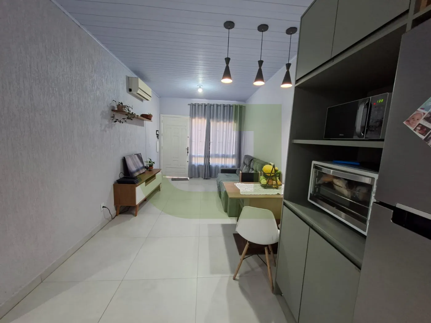 O imóvel dispõe de 3 dormitórios, sala de estar e cozinha integradas, proporcionando um ambiente moderno e funcional, além de lavanderia e banheiro social.