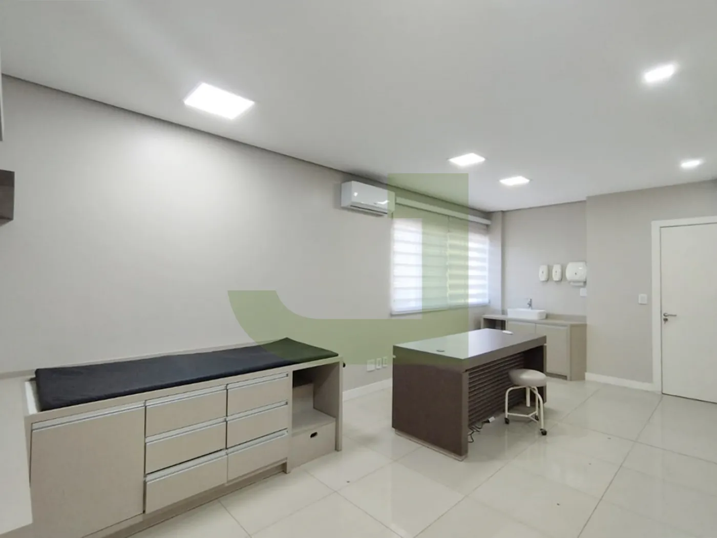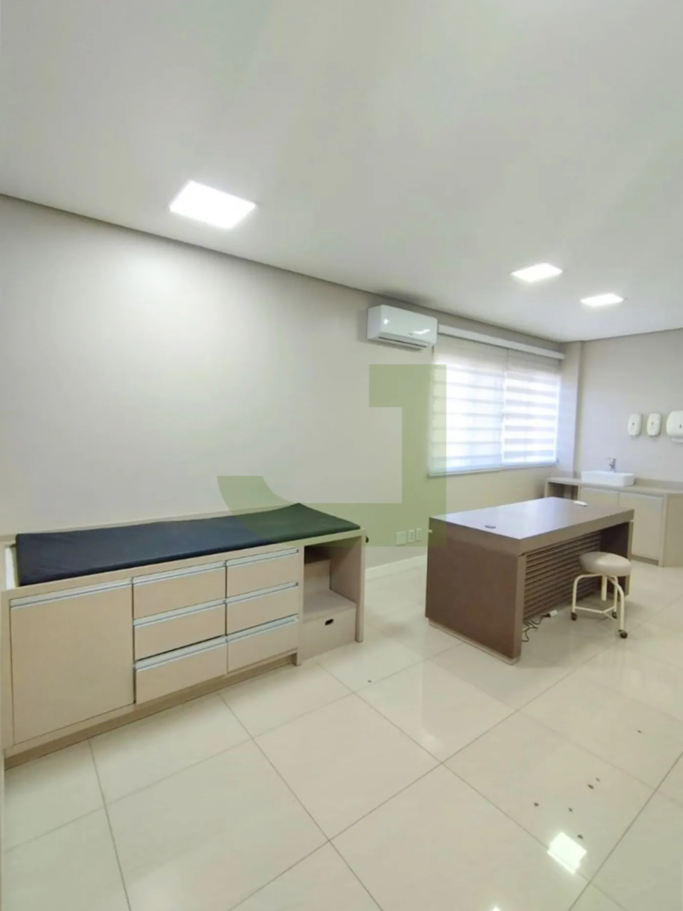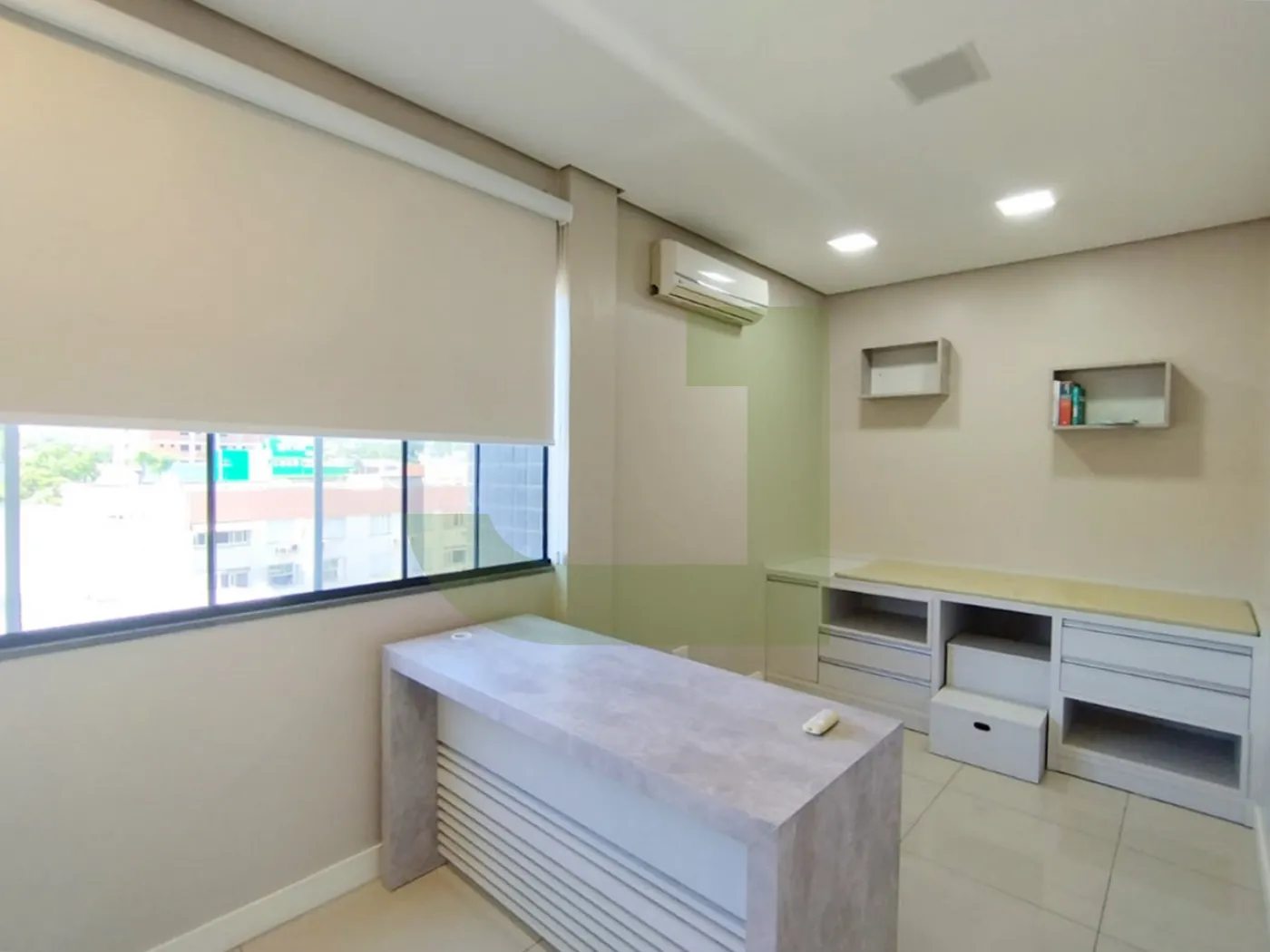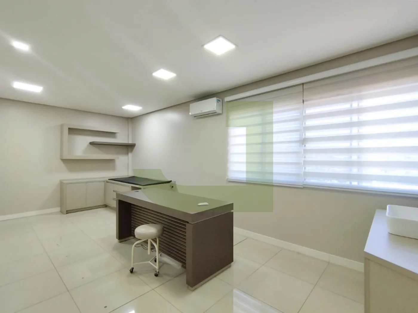 Ela possui um layout moderno e funcional, com piso em porcelanato, teto rebaixado em gesso, iluminação em LED e ar-condicionado. O espaço é dividido em uma recepção, 2 salas amplas.