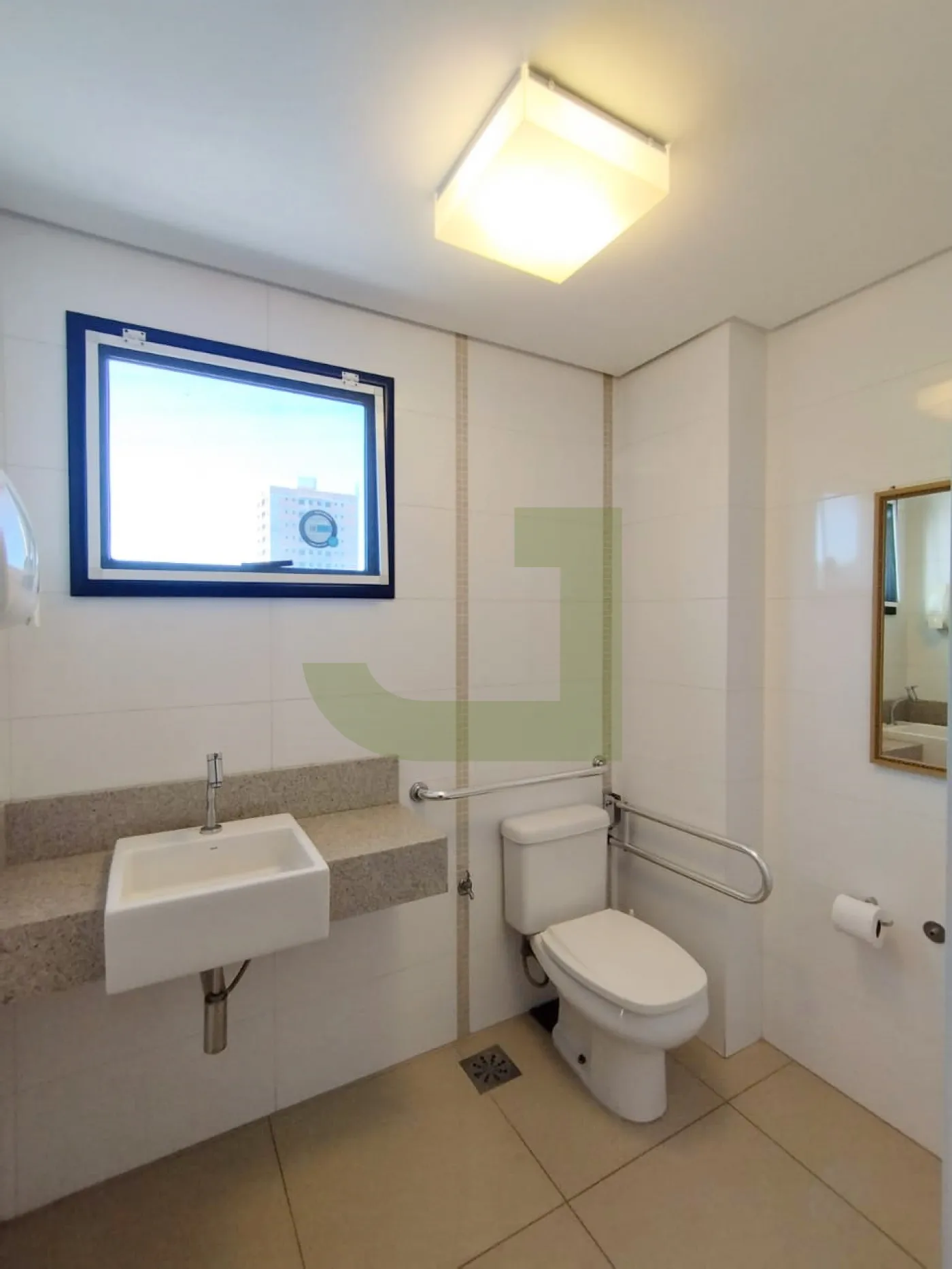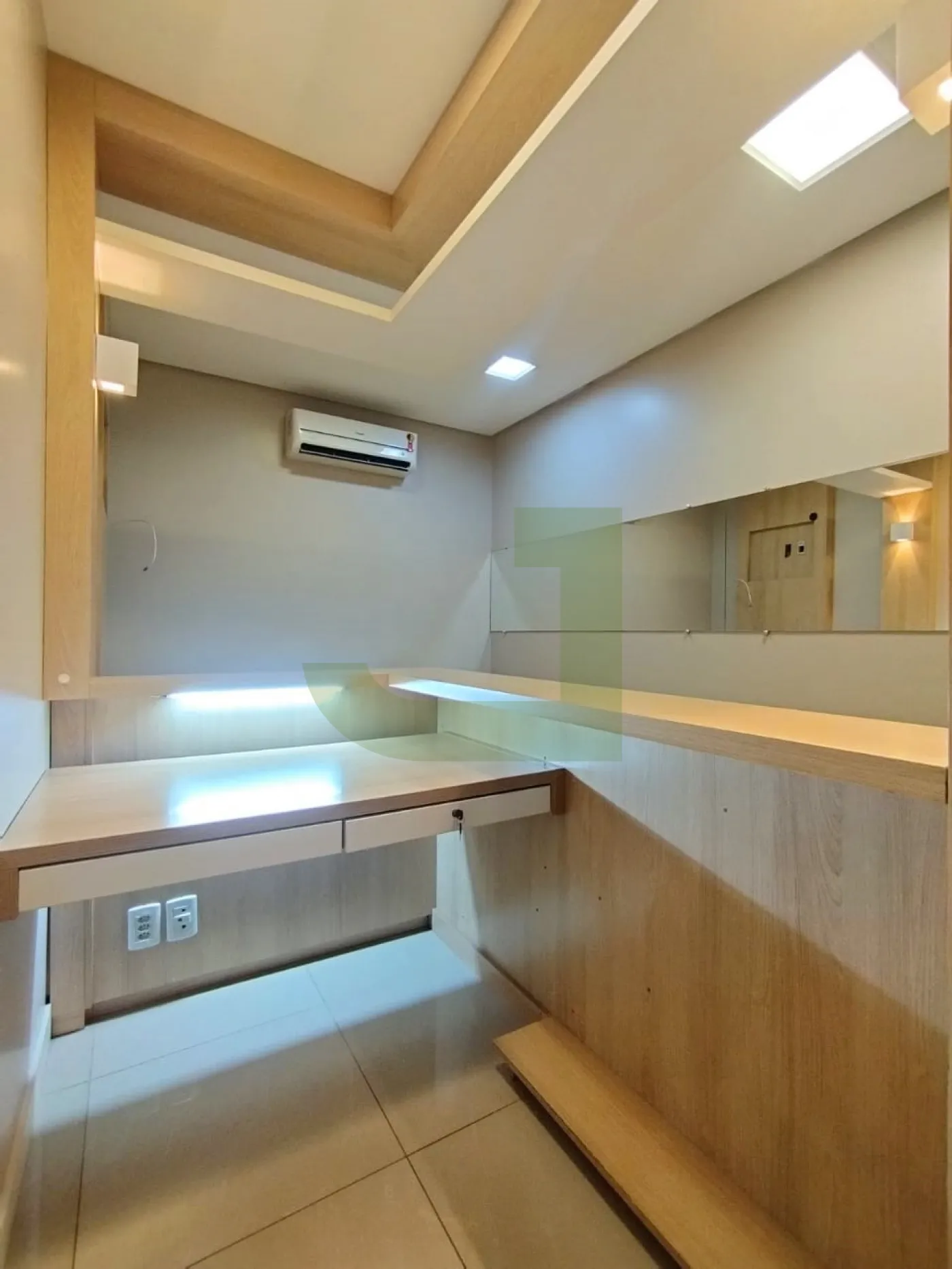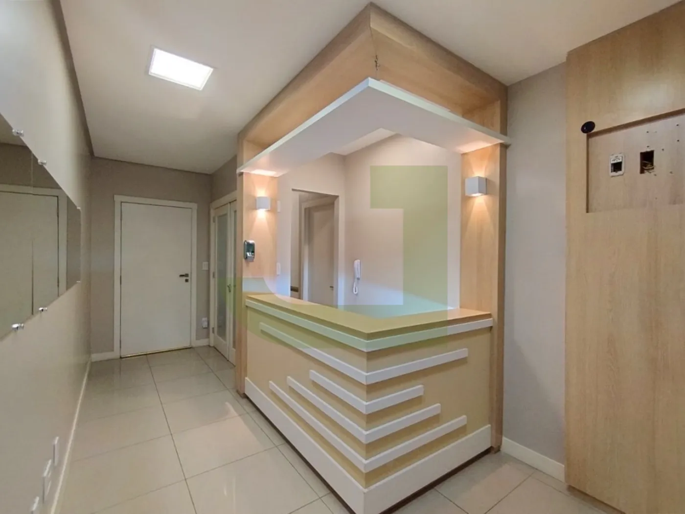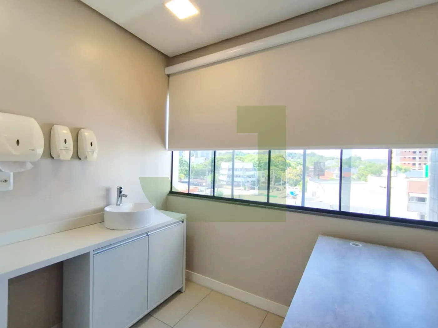 Ela possui um layout moderno e funcional, com piso em porcelanato, teto rebaixado em gesso, iluminação em LED e ar-condicionado. O espaço é dividido em uma recepção, 2 salas amplas.